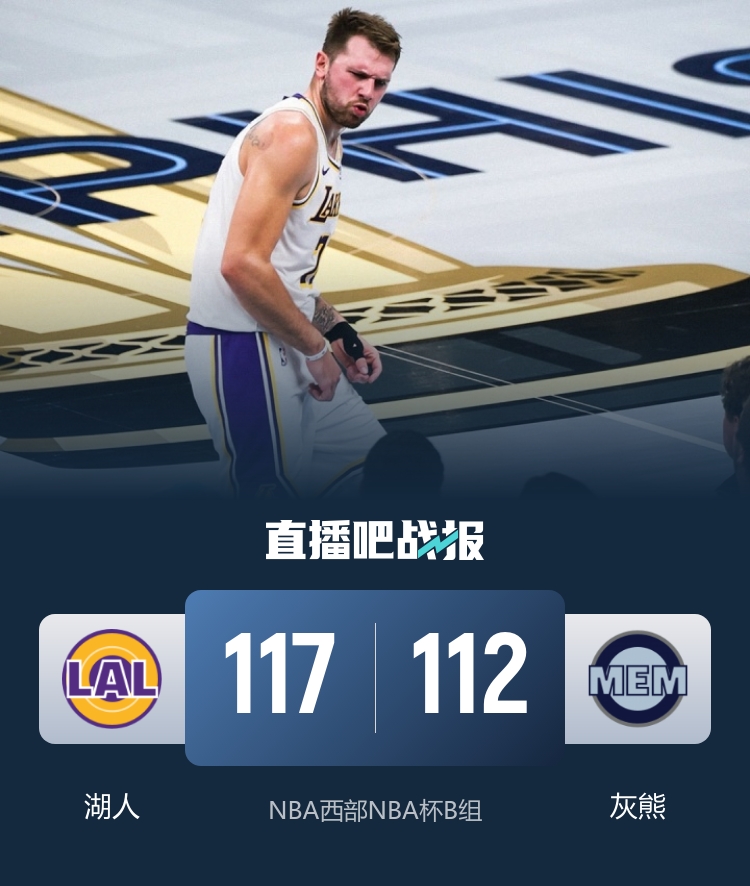 比赛开始,灰熊上来打出8-2开局,东契奇里突外投连砍7分带领湖人咬住比分,随后还是东契奇连续取分单节13分助湖人领先4分,次节双方展开拉锯战,湖人进攻端突然断电,灰熊众将多点开花连续外线发炮,4分多钟轰出25-4超级攻击波一举半场反超14分。下半场,湖人连续造杀伤,东契奇三分再进湖人一波18-5攻击波追上比分,随后双方比分交替领先,三节湖人追到差2分,末节湖人7-0反超回,艾顿回到替补席,八村塁和东契奇三分再进领先双位数,随后灰熊追分湖人总能回应保持住10分左右领先,最终湖人117-112逆转灰熊。