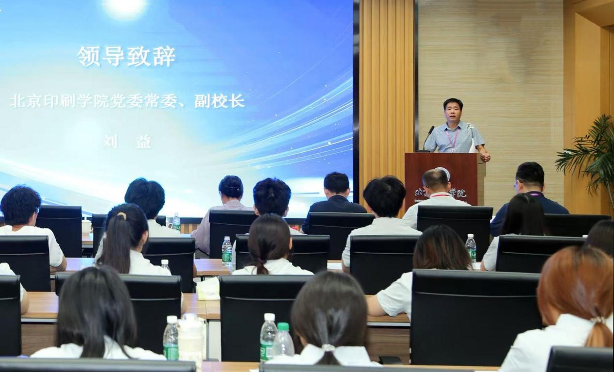 开营仪式上,学校党委常委、副院长刘益在致辞中表示,为服务出版印刷行业的数字化转型需求,学校积极开展“数智学院”建设,通过产教融合、协同育人的方式,培养具有数智素养的专业化高层次人才。2024-2025学年,学校与中软国际教育科技集团、科大讯飞、大家智合(北京)网络技术股份有限公司等6家企业共建10门“AI+出版”“AI+印刷”“AI+艺术”产教融合课,全面推进“通识+专业”的“1+N+X”的人工智能课程体系建设。他表示,数智化不仅改变了我们的生活方式,更深刻影响教育体系与职业生态,同学们要抓住这一机遇,潜心学习数智技术,提升智能素养和创新能力,为未来的职业发展奠定坚实基础。