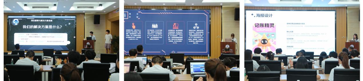 在结营仪式上,各项目小组集体进行了项目陈述和答辩,各团队纷纷展示了自己的实训成果。学员们结合各自专业特点,从“人工智能+专业”的角度对技术要点、难点进行了深入剖析,并展示了项目的亮点和优势。经过企业专家的评审,最终评选出相应奖项。