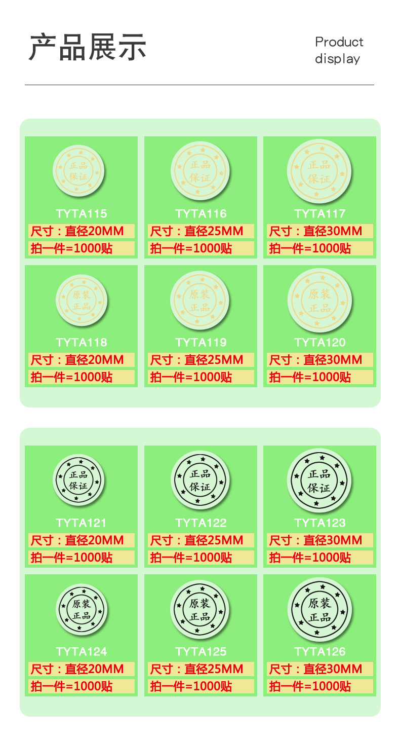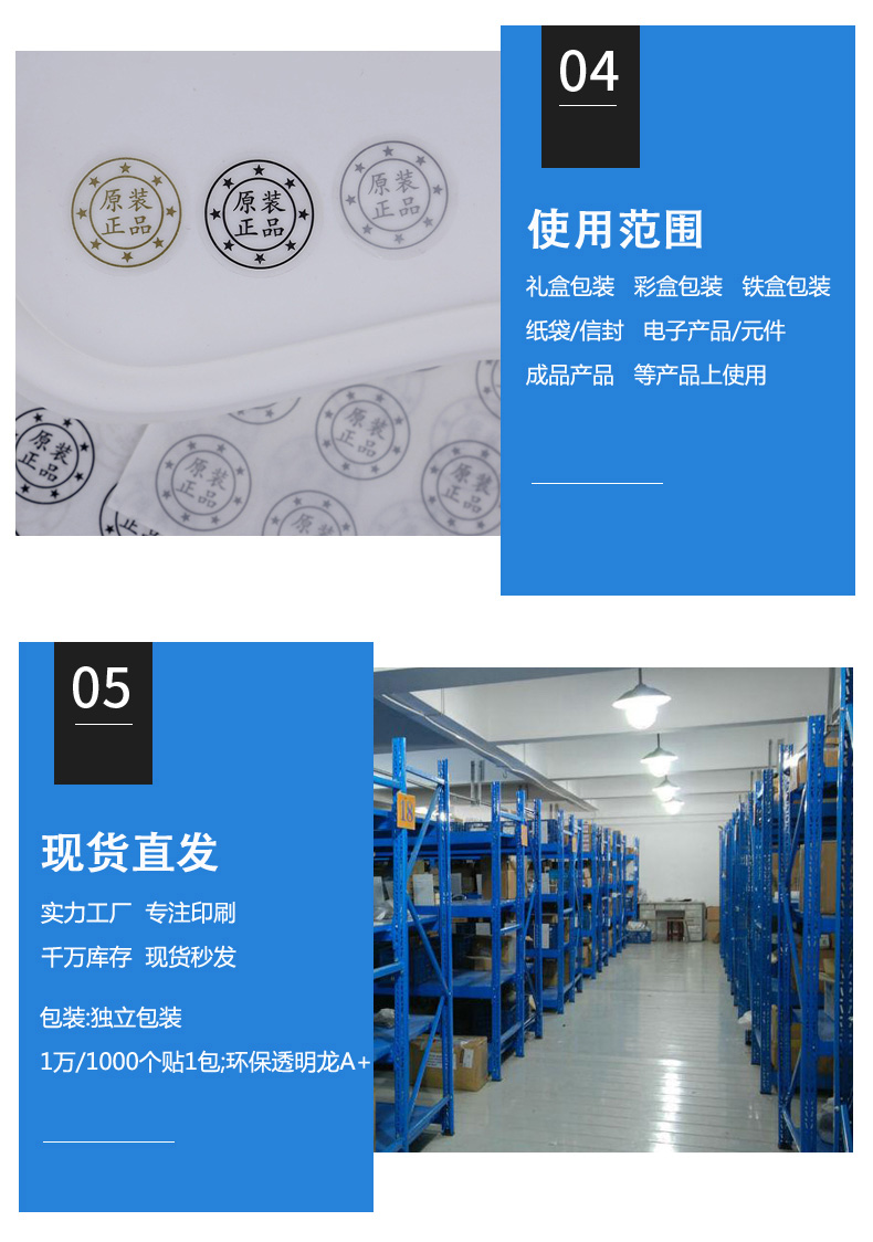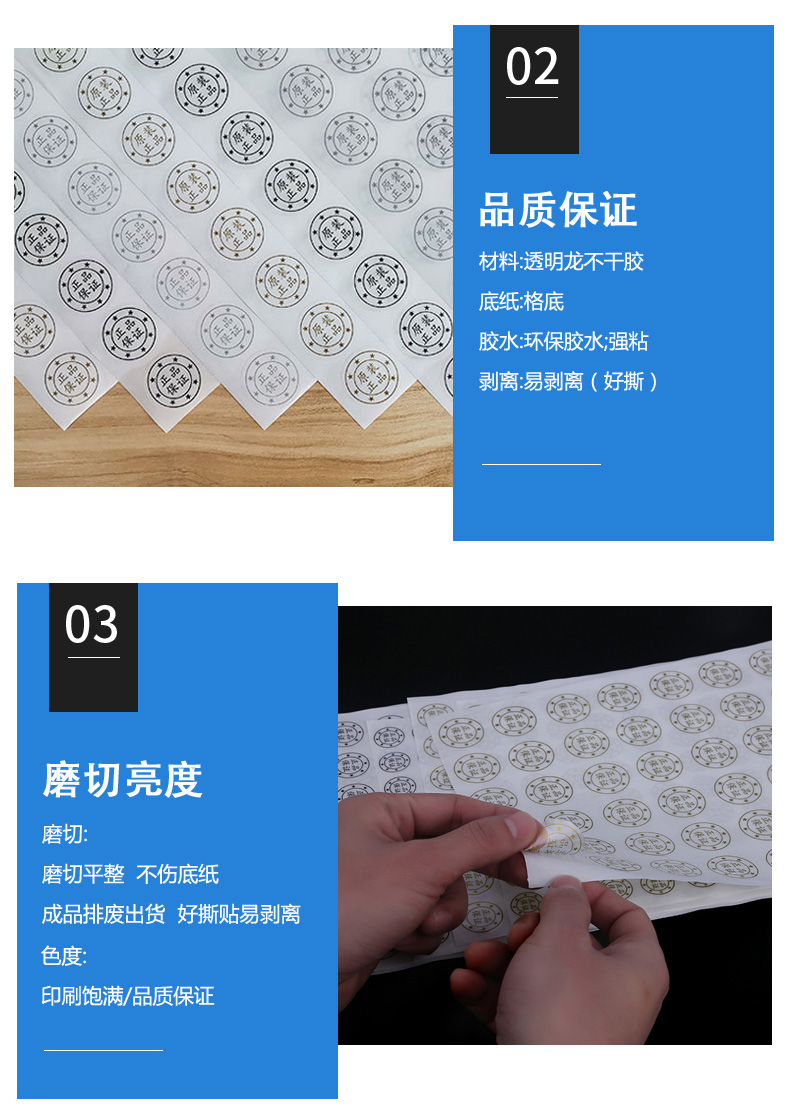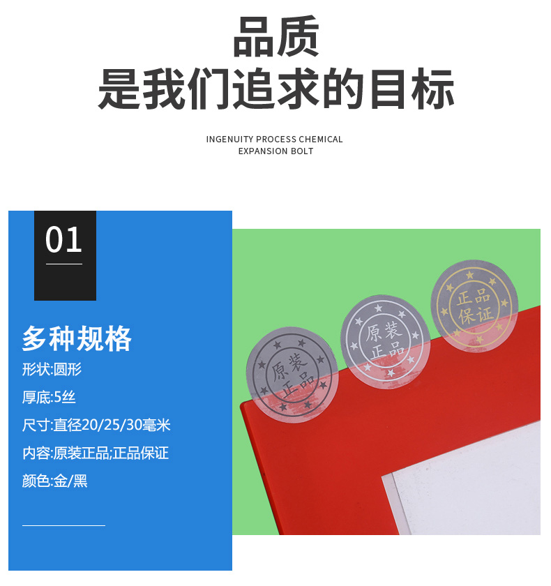 圆形封口贴纸透明原装正品保证logo烫金银黑色不干胶标签印刷制作