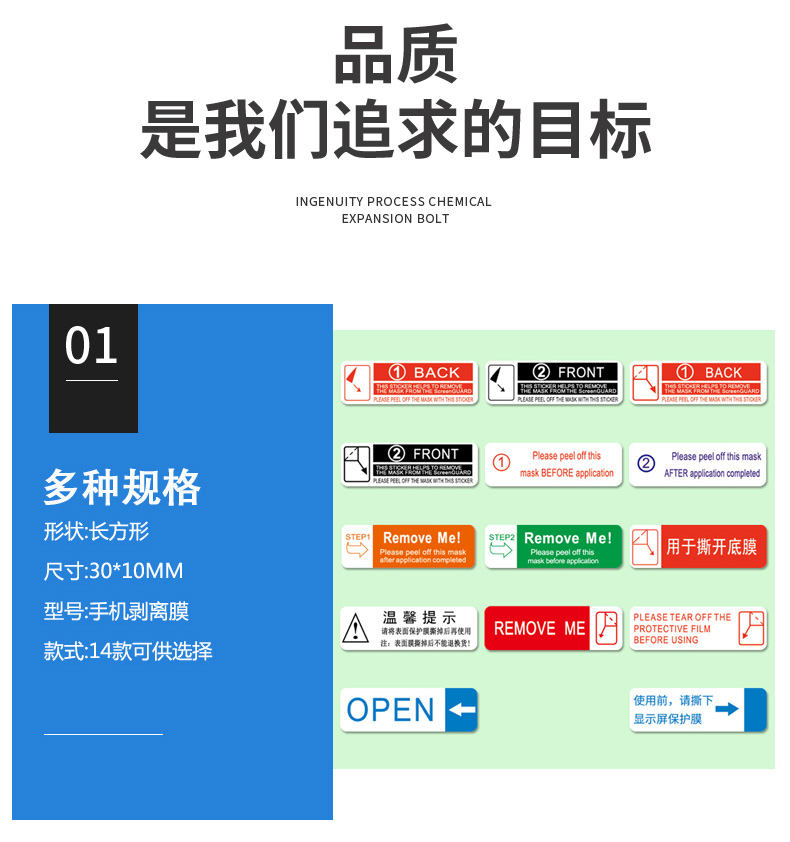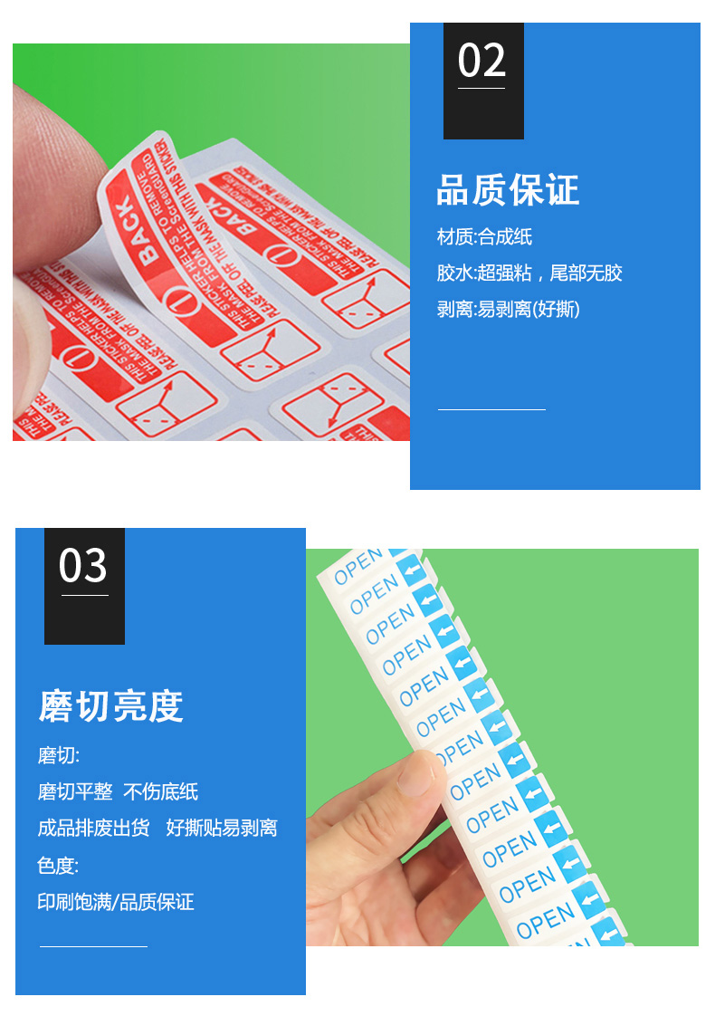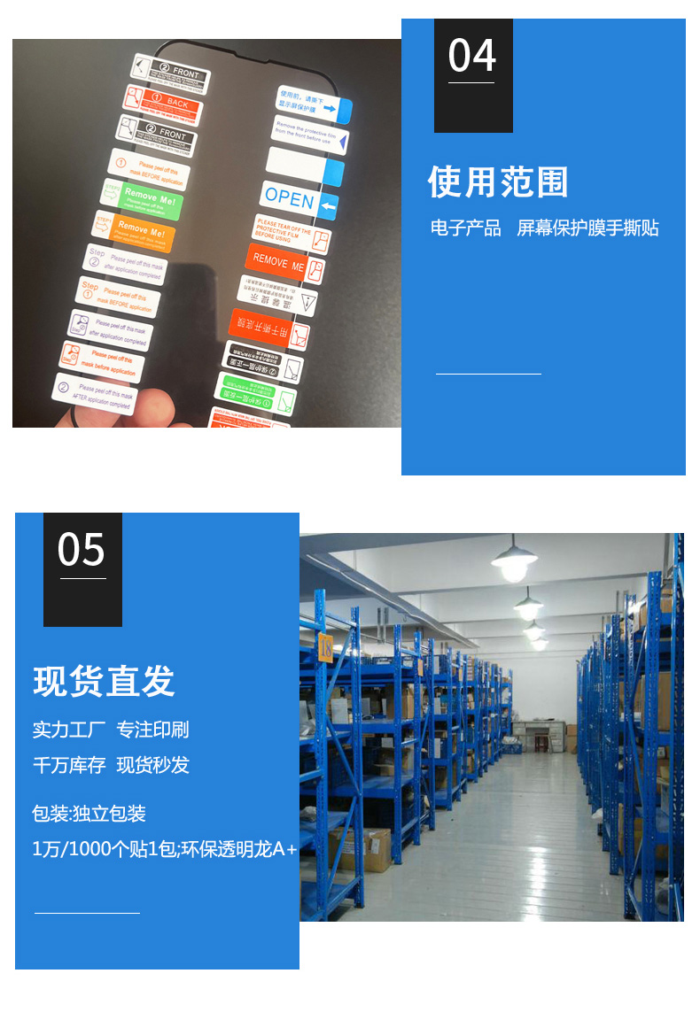 合成纸不干胶钢化膜剥离膜手机撕膜标签贴纸易撕超强粘间隔胶印刷
